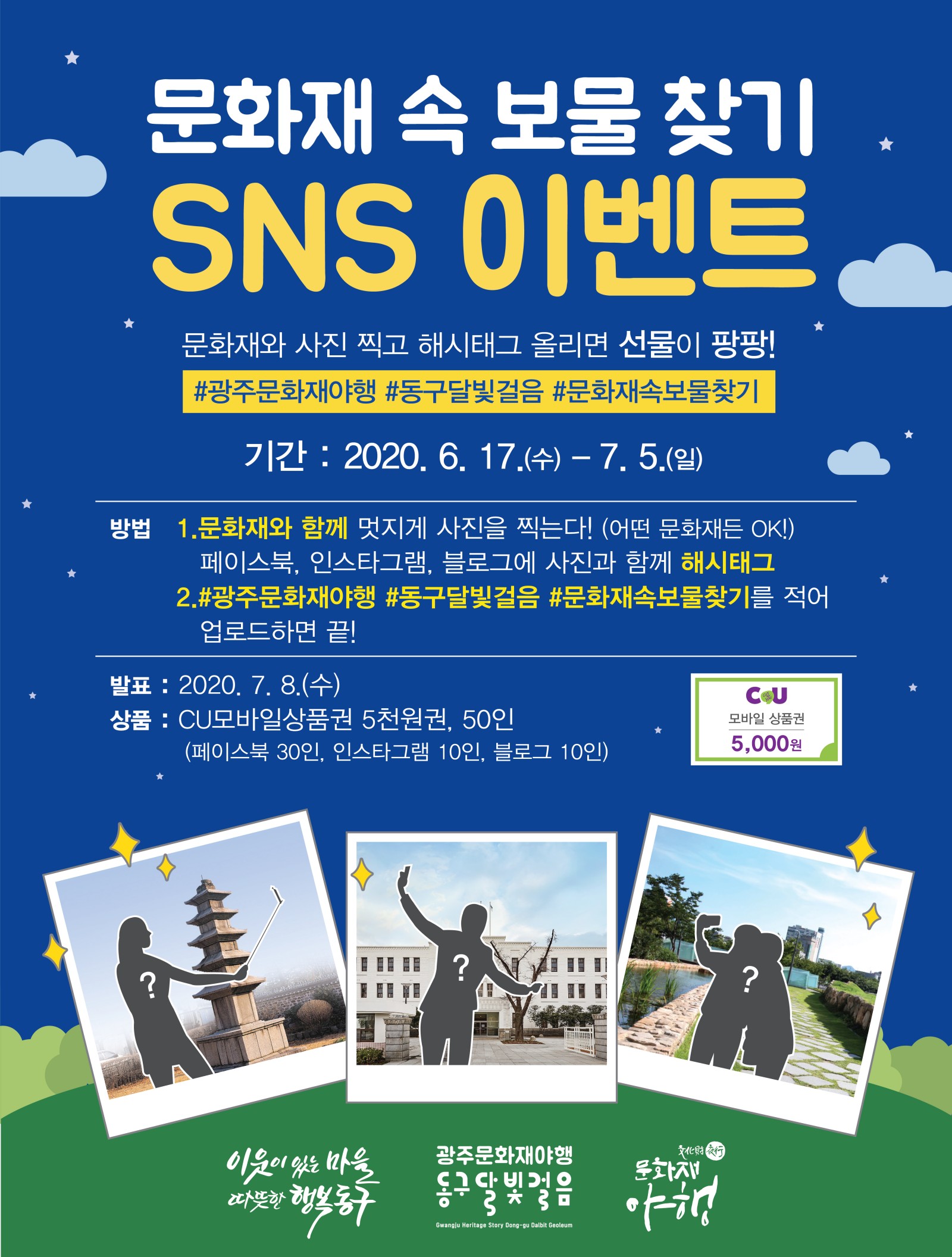 문화재와 사진 찍고 해시태그 #광주문화재야행 #동구달빛걸음 #문화재속보물찾기 올리면 선물이 팡팡!