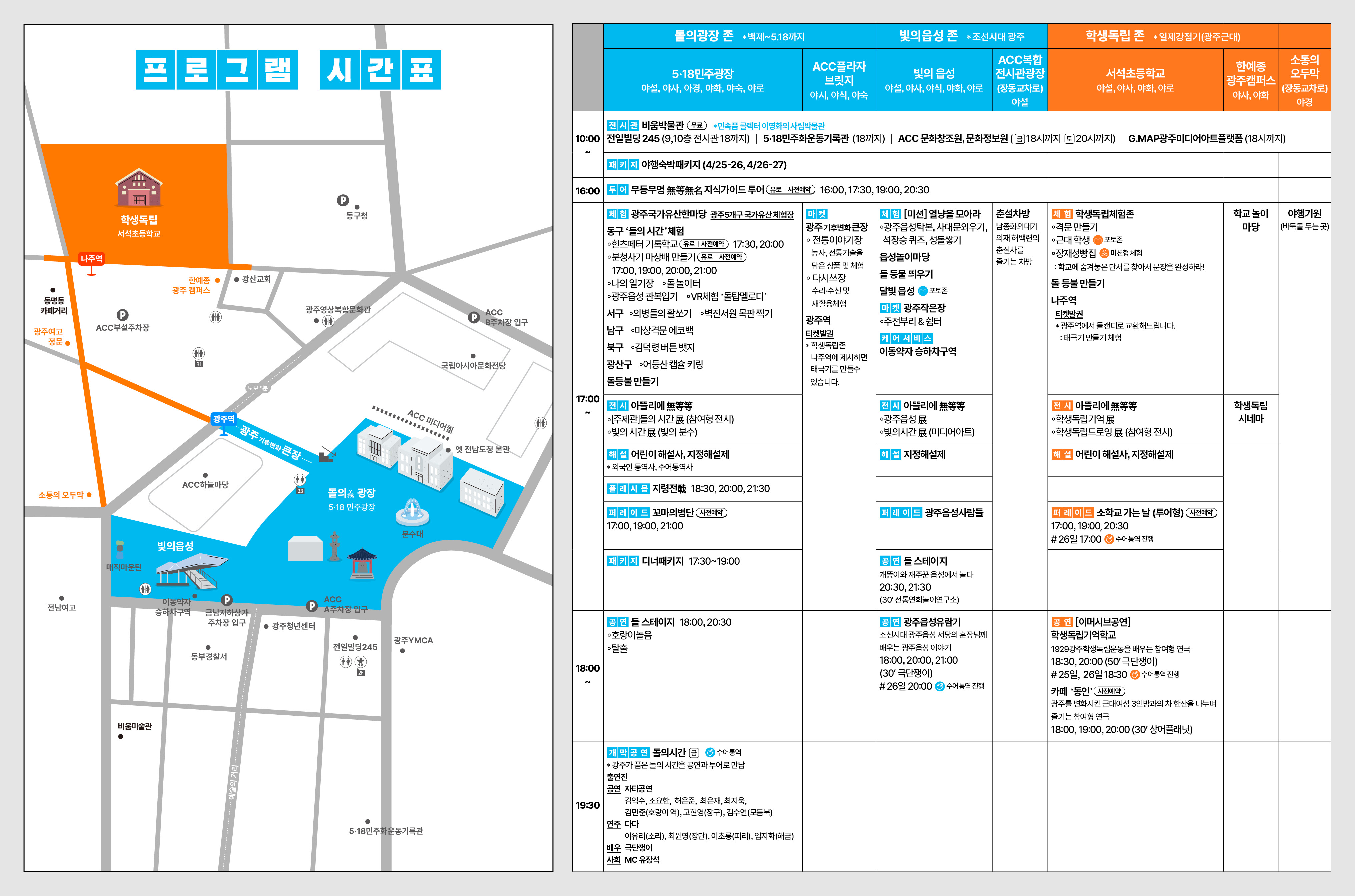 5·18민주광장, 서석초등학교, 광주읍성유허, 빛의 읍성 일원